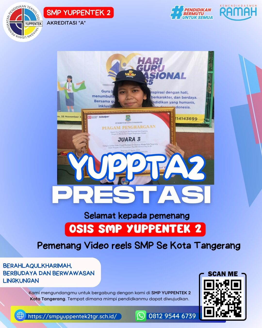 OSIS SMP Yuppentek 2 Tangerang Raih Juara Video Reels SMP se-Kota Tangerang